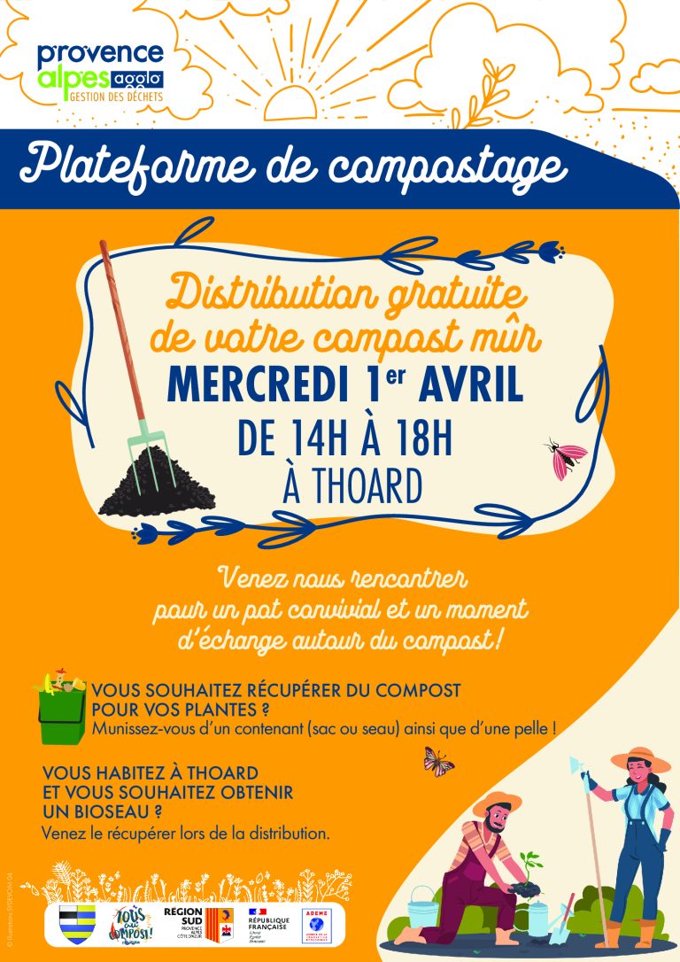 Distribution gratuite de votre compost : Mercredi 1er avril de 14h à 18h à Thoard