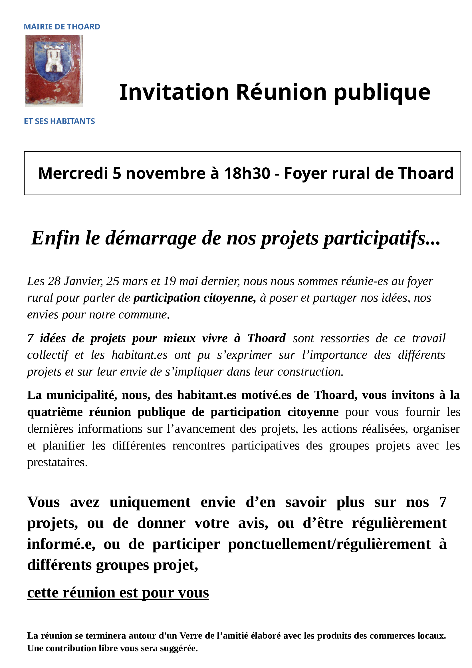 Réunion publique participation citoyenne : mercredi 5 novembre à 18h30 au foyer rural