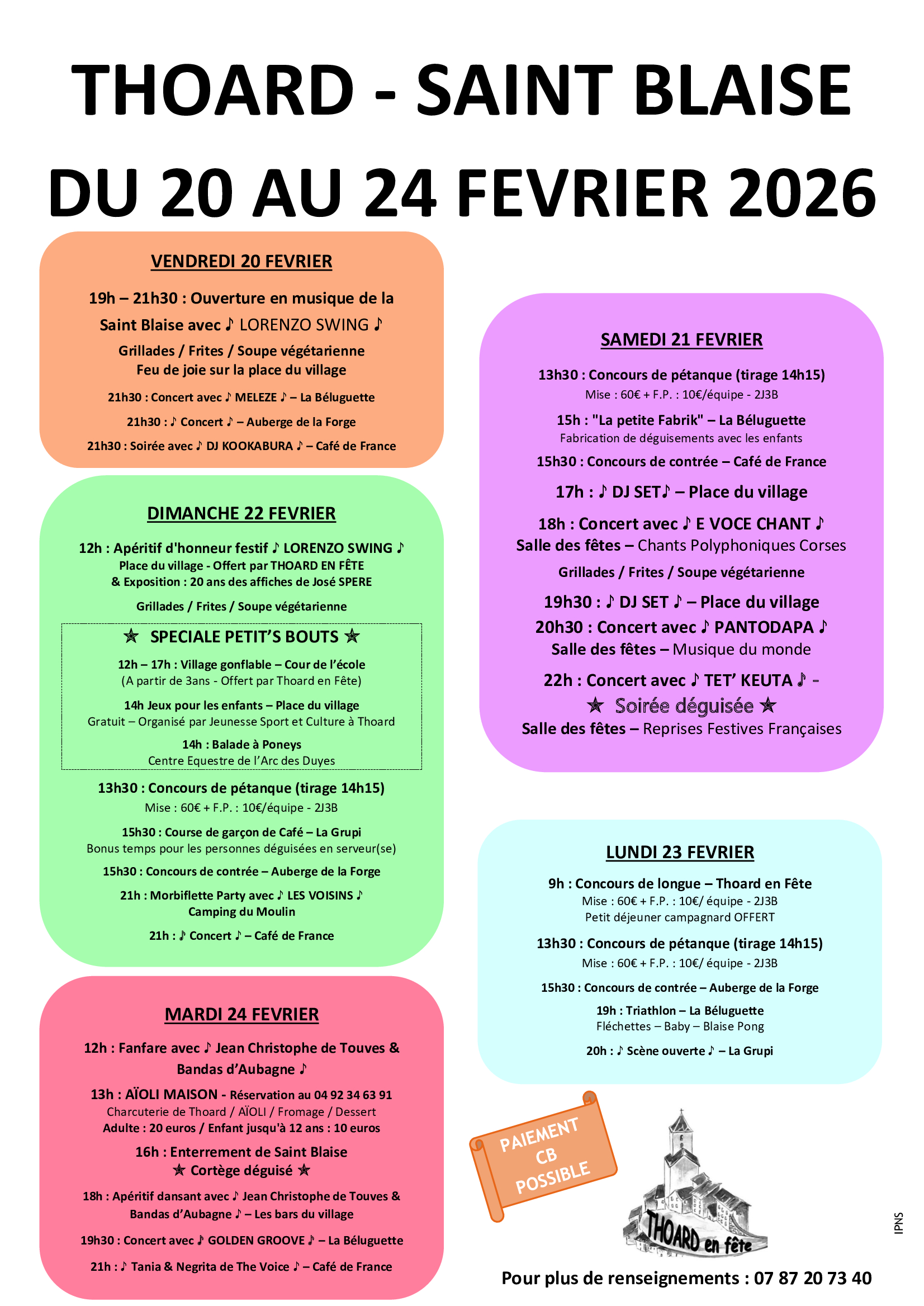 Festivités de la St Blaise du 20 au 24 février 2026 avec le programme